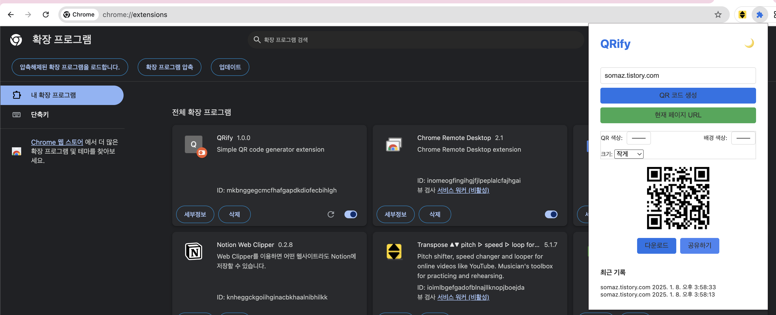 이런식으로 간단하게 QR 코드를 생성하는 Extension을 만들어보았다.