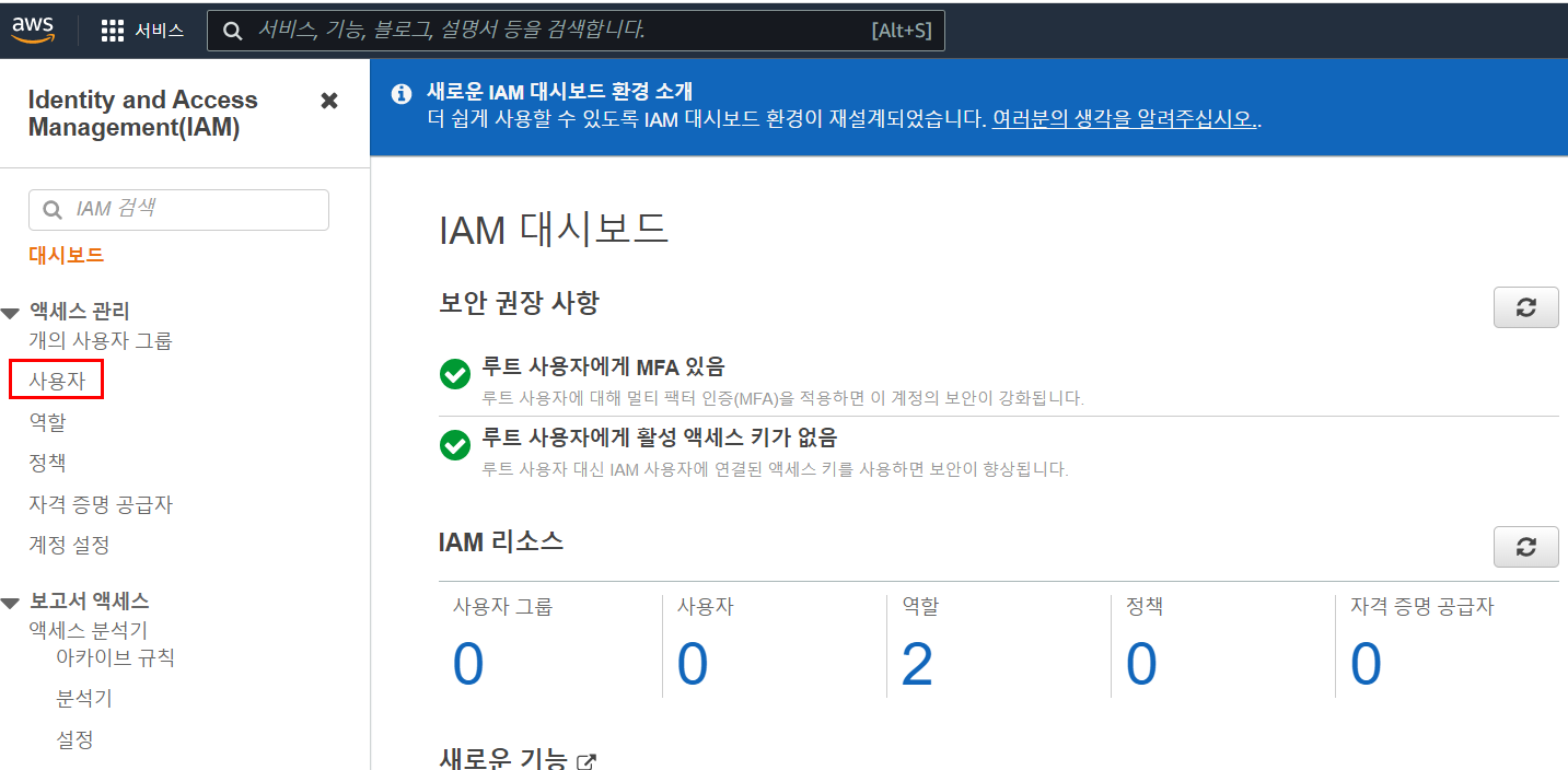 1️⃣ IAM 콘솔 접속 → IAM 대시보드로 이동