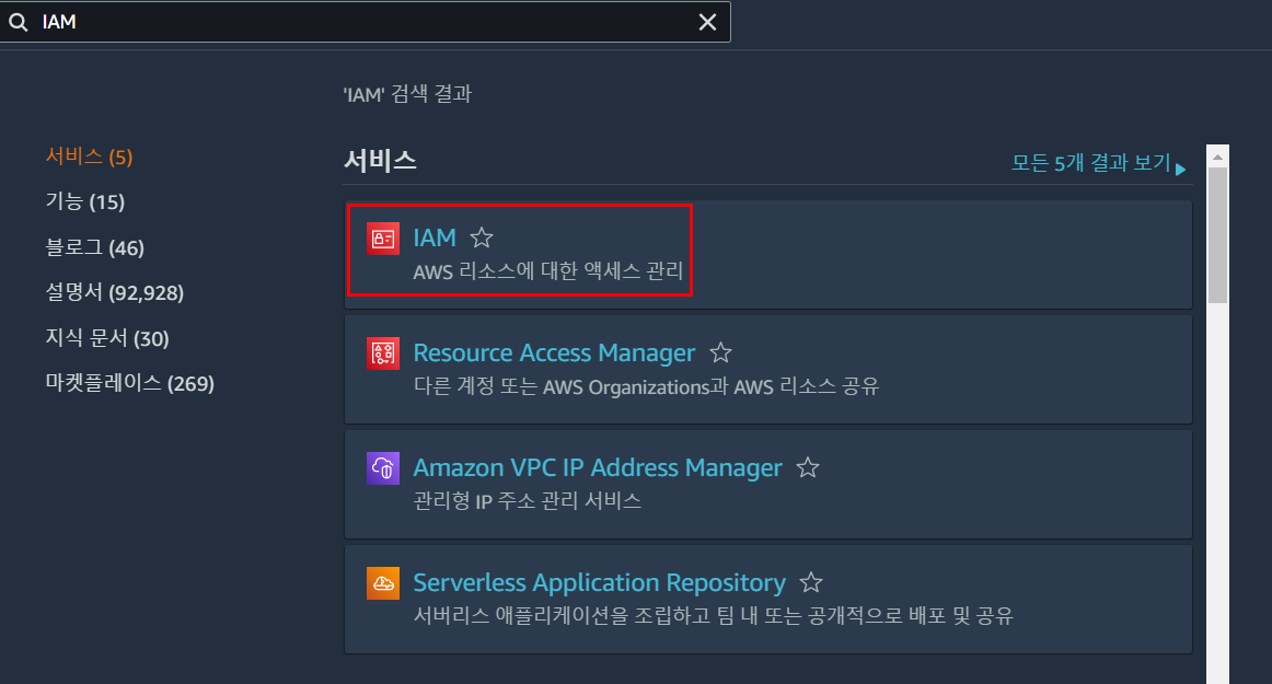 1️⃣ AWS 콘솔 접속 → IAM 서비스 이동