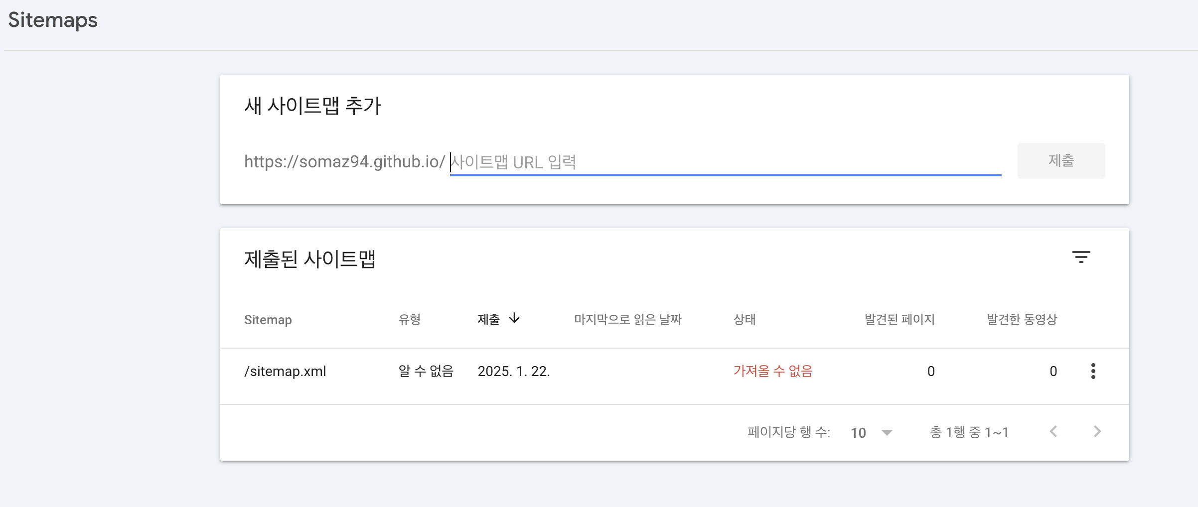 - 문제가 발생하면 수동으로 Sitemap URL을 제출하거나 설정 파일(.yml)을 검토하여 올바르게 작성되었는지 확인해야 한다.