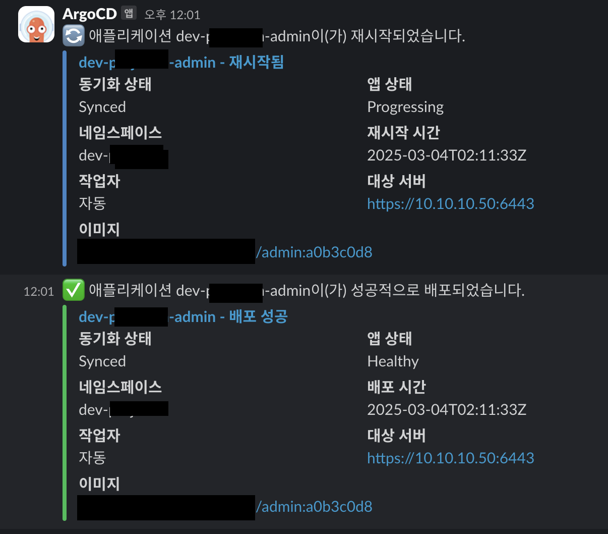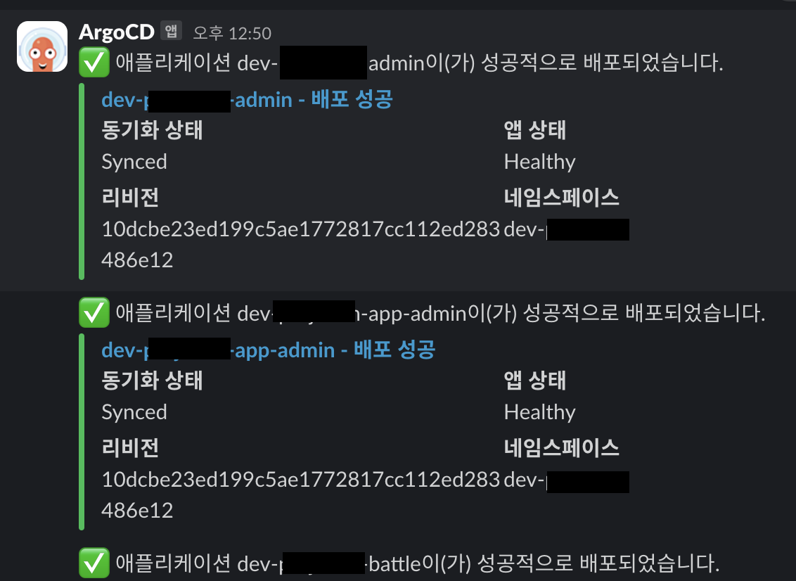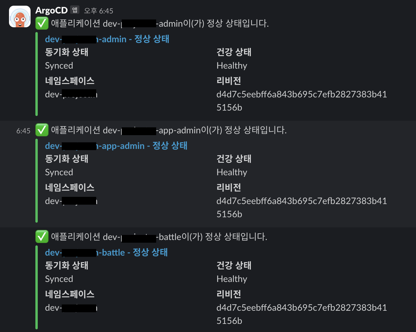 - 이제 ArgoCD의 중요한 상태 변화는 Slack으로 바로 알람을 받을 수 있다.