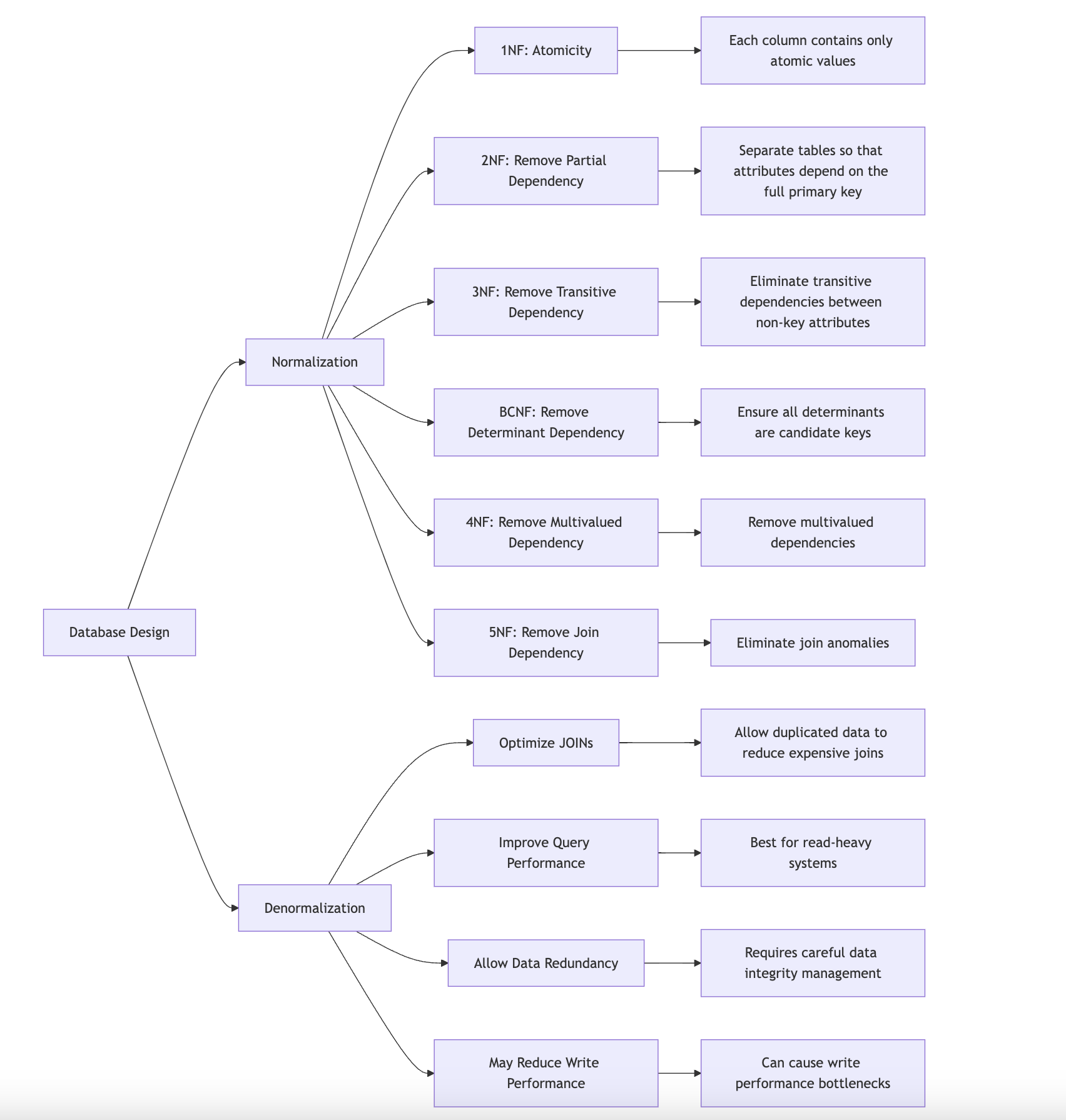 - 이상(Anomalies) 방지: 삽입 이상(Insertion Anomaly), 삭제 이상(Deletion Anomaly), 갱신 이상(Update Anomaly)
