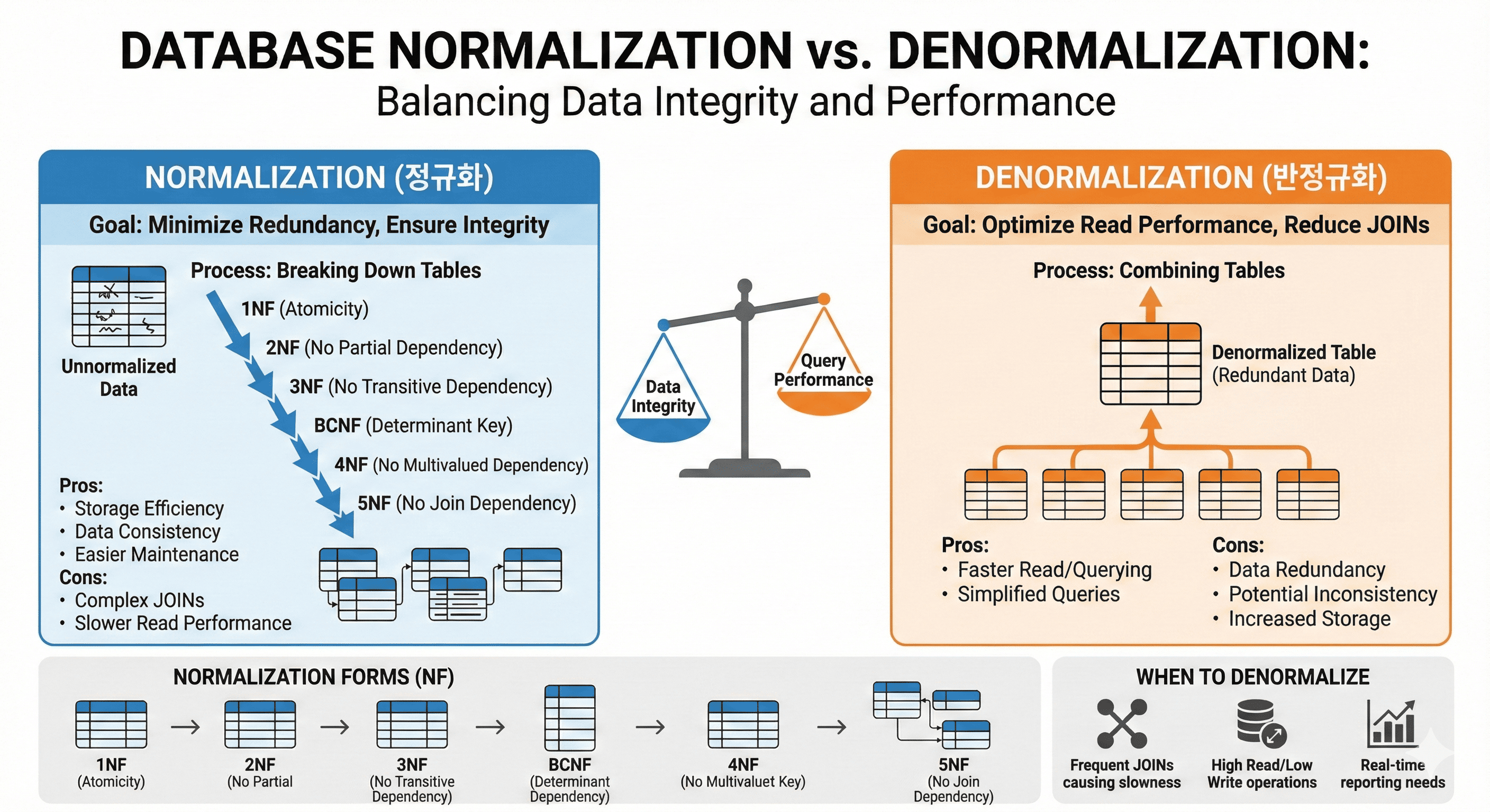 정규화(Normalization)와 반정규화(Denormalization)는 데이터베이스 설계의 핵심 개념이다.