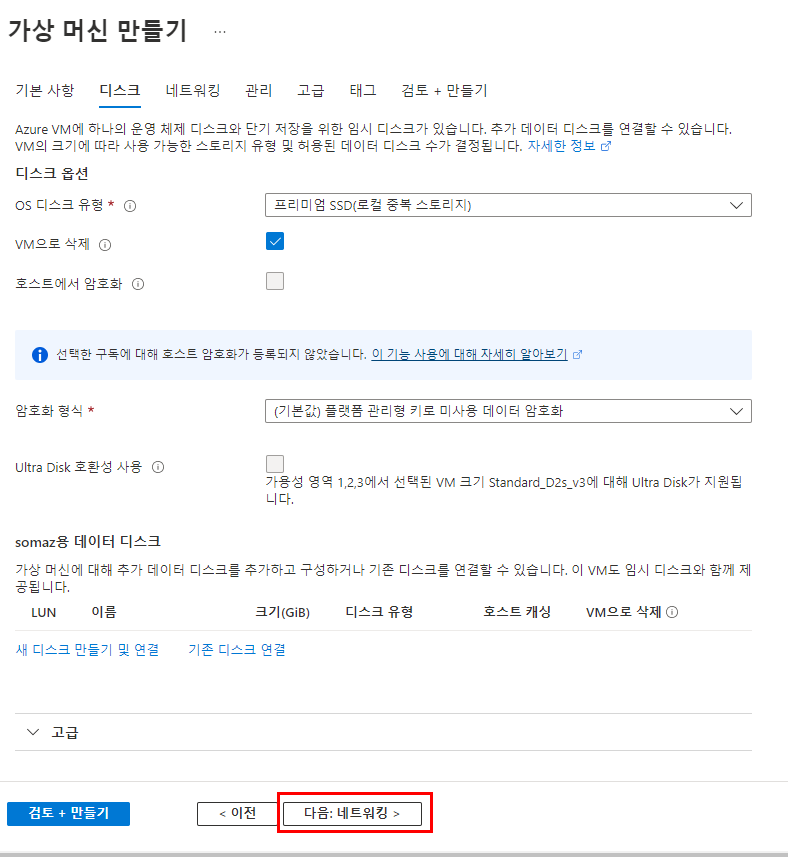 - OS 디스크, 데이터 디스크 등 필요시 추가 가능