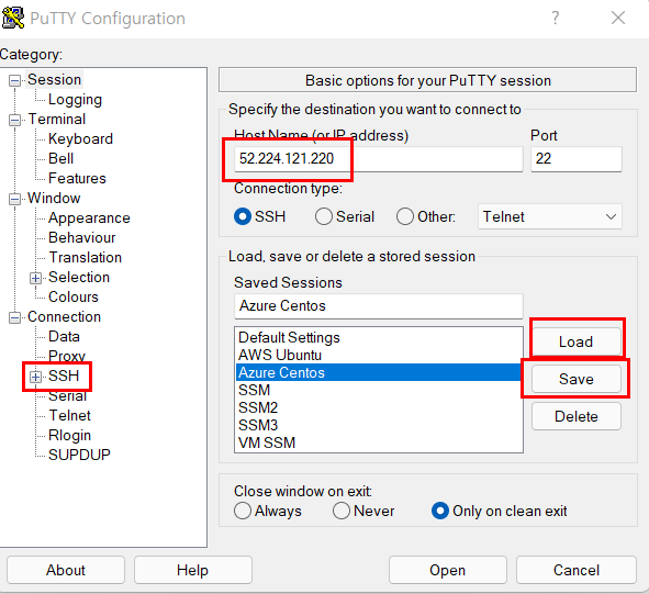 - Host Name: VM의 공용 IP 주소 입력