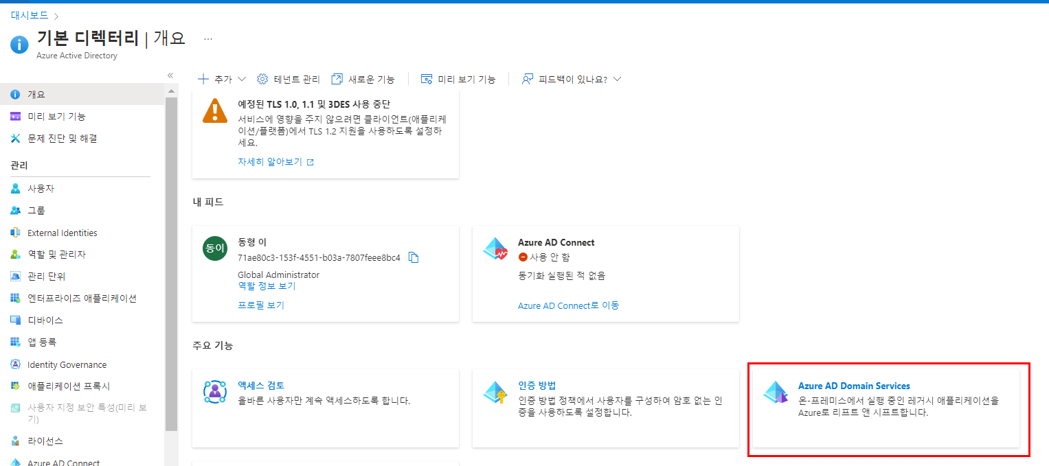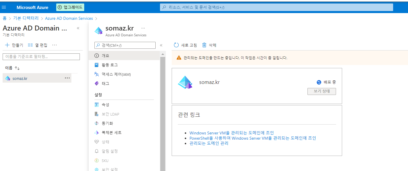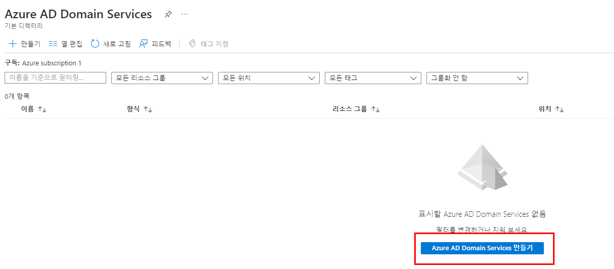 다음의 기술자료를 참고하여 Azure AD DS 활성화 를 진행하겠다.
