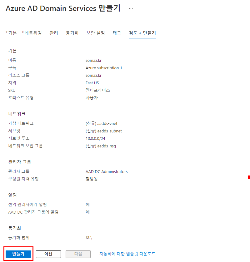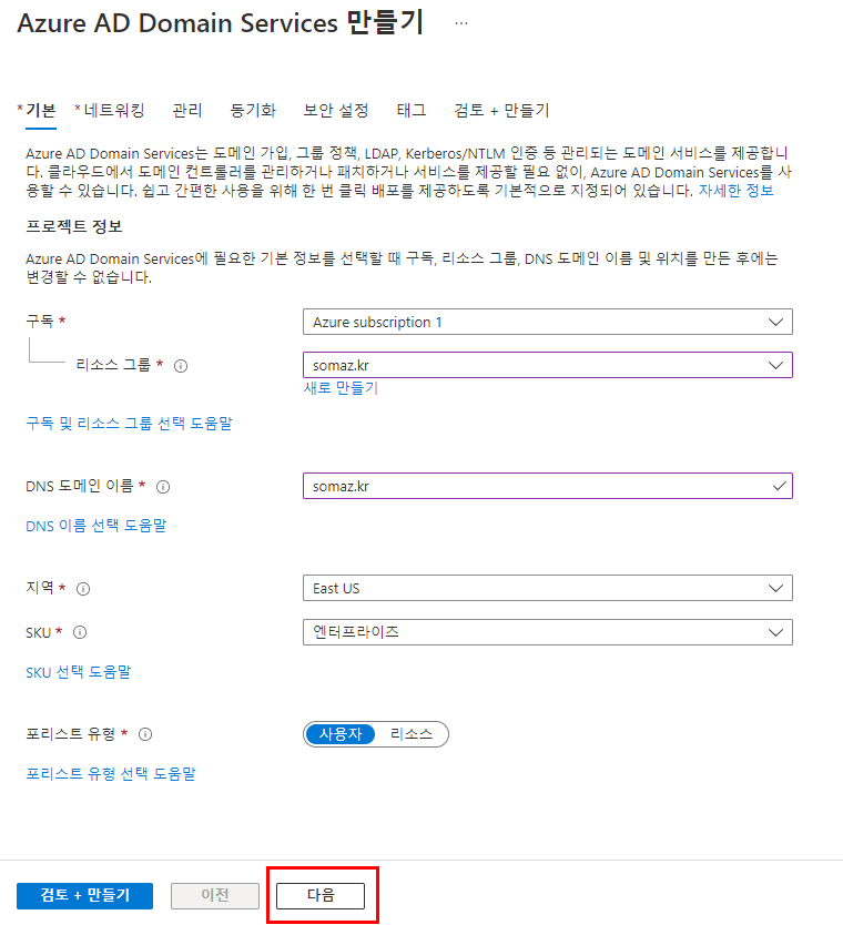 https://docs.microsoft.com/ko-kr/azure/active-directory-domain-services/tutorial-create-instance