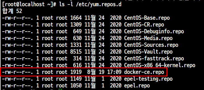 # ls -l /etc/yum.repos.d // docker repo 추가 확인
