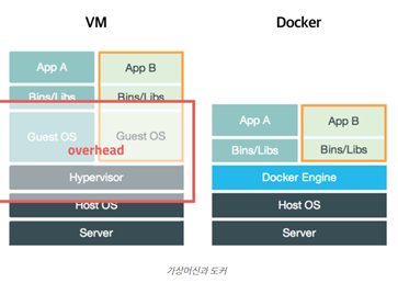 Container는 격리된 공간에서 프로세스가 동작하는 기술이다. 기존 가상화 방식과 다르게 프로세스를 격리시키기 때문에 가볍고 빠르게 동작한다. CPU나 메모리는 딱 프로세스가 필요한 만큼만 추가로 사용하고 성능적으로도 거의 손실이 없다.