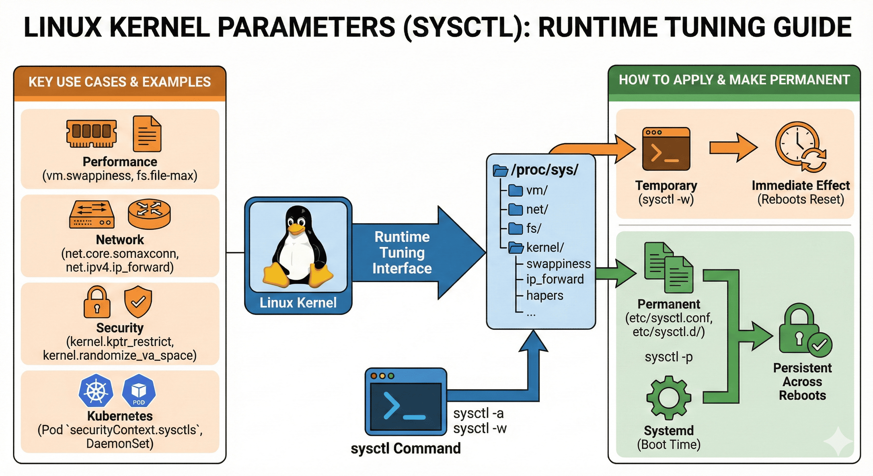Overview리눅스 커널 파라미터(kernel parameters, sysctl 설정)는 운영체제의 동작을 런타임에 세부 조정할 수 있게 해주는 설정 값들이다. 이러한 파라미터들은 가상 파일시스템인 `/proc/sys` 경로를 통해 노출되며 (`/proc/sys/vm/swappiness` 등), `sysctl` 명령어를 사용하여 조회하거나 변경할 수 있다. 주요 활용 분야로는 성능 튜닝, 보안 강화, 네트워킹 설정 등이 있으며, 메모리 관리부터 네트워크 스택 동작, 시스템 보안 옵션까지 다양한 커널 동작을 제어한다. 예를 들어 메모리 관리 관련 파라미터를 조정해 성능을 개선하거나, 특정 네트워크 기능을 활성/비활성화하여 트래픽 처리나 보안을 최적화하고, 보안과 관련된 파라미터를 조절해 시스템을..